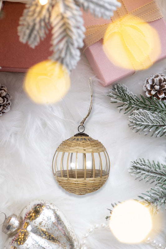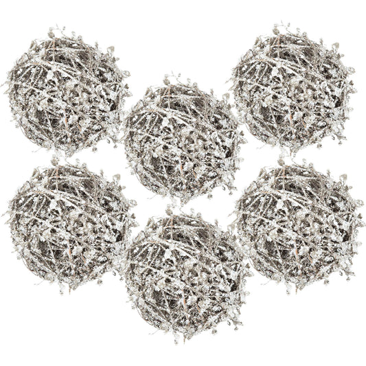 D4.5' Iced Leaf/Twig Ball, Decorative Hanging Ball Christmas Tree Ornaments for Holiday Party Decorations, Set of 4