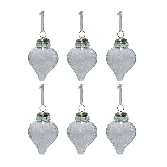 3x3x5.5' Tear Drop Ornament, Glass Decorative Hanging Christmas Tree Ornaments for Holiday Party Decorations, Set of 6