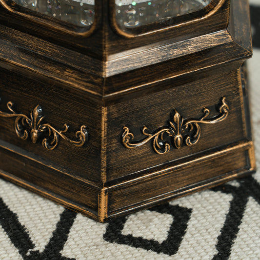 HOMCOM Christmas Snow Globe Lantern with Music and Lights, Musical Snow Globe with Swirling Glitter, Battery Operated Christmas Decoration for Holiday Party or Gift, Bronze