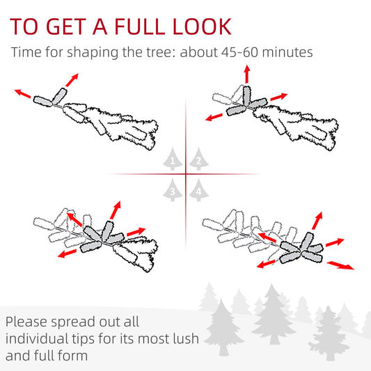 HOMCOM 7.5ft Tall Prelit Artificial Christmas Tree Holiday Décor with 1518 Branches, 500 Warm White LED Lights, Auto Open, White