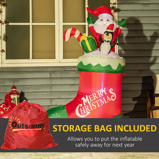 Outsunny 5ft Christmas Inflatables Outdoor Decorations Santa and Penguin Standing in Sock with Candy Cane Gift Box, Blow-Up LED Yard Christmas Decor for Lawn Garden Party