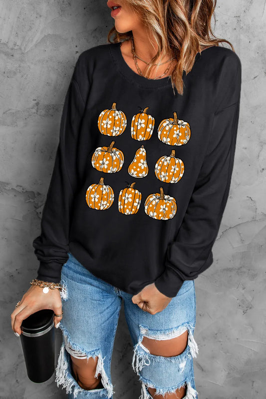 Pumpkin Round Neck Long Sleeve Sweatshirt