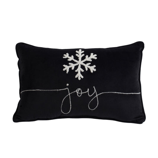 Set of 2, 18x12' Black Velvet Pillow With Embroidered Joy And Frosty Snowflake, for Christmas Halloween Holiday Decor
