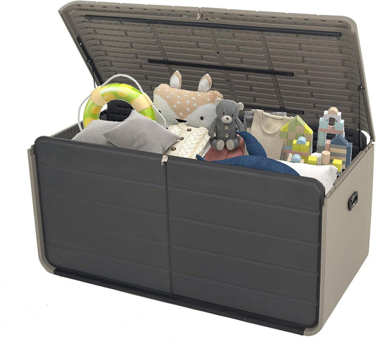 Resin Deck Box 160 Gallons, Large Heavy-Duty Outdoor Storage Box, Lockable & Waterproof Patio Outside Storage Box for Patio Furniture, Tools, Pool Supplies