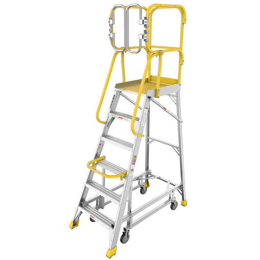 6 Step 375lbs Aluminum Rolling Platform Ladder