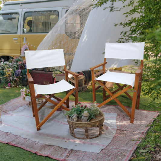Classic Style Wooden Director Chair Set with Canvas Folding Seat in White