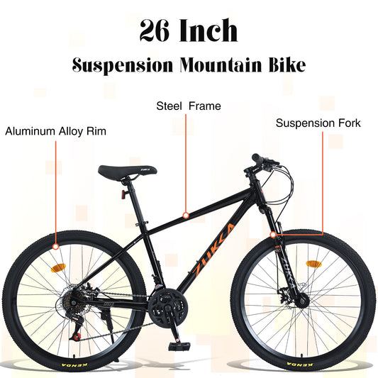 Mountain Bike for Men and Women 26 inch 24 Speed Suspension Fork KENDA Tires