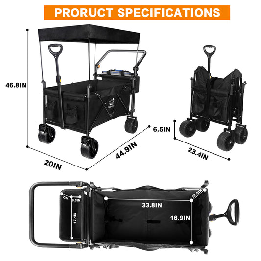 Minimeetall Extention ExCollapsible Foldable Wagon Cart Beach Wagon Heavy Duty Utility Cart Utility Wagon Grocery Cart for for Camping Shopping Sports Gardeing Fishing Supports 225lbs Black