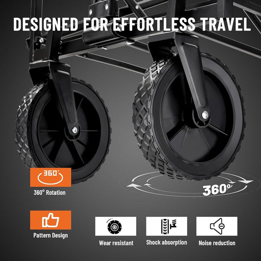 Collapsible Folding Wagon, Heavy Duty 220Lbs Capacity, Foldable Utility Cart for Outdoor Camping, Grocery, Sports, Beach - All Terrain