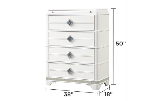 Laguna Modern Style 4-Drawer Chest Made with Wood, Hidden Jewelry Drawer and Crystal Accents in White same as B009P270826 (CA inventory)