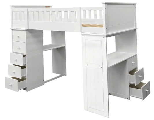 White Twin Over Twin Bunk Bed with Built-in Ladder