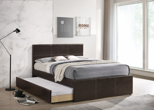 Full Size Bed w/ Trundle Slats Espresso Faux Leather Plywood Kids Youth Bedroom Furniture Wooden Slats Clean lines Upholstered Headboard 1pc Bed
