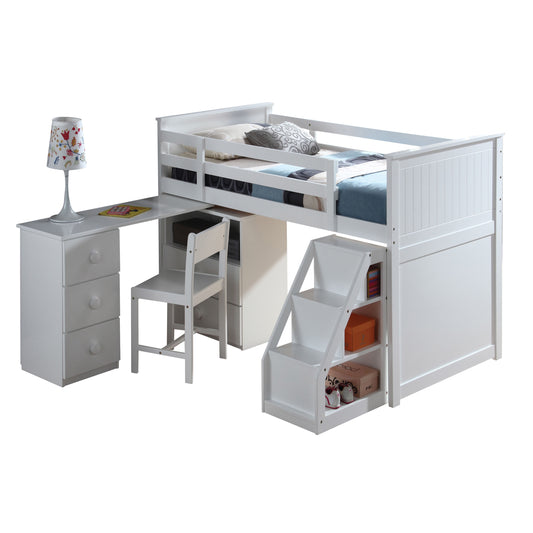 White Twin Loft Bed with Built-in Desk and Chest