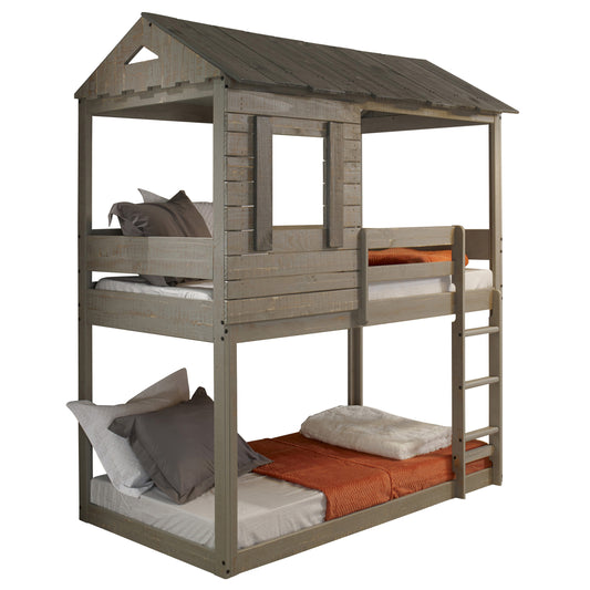 Rustic Grey Twin Over Twin Bunk Bed with Built-in Ladder