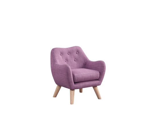 Fenix 19.5'W Pink Linen Kids Chair with Button Tufted Back and Wooden Legs
