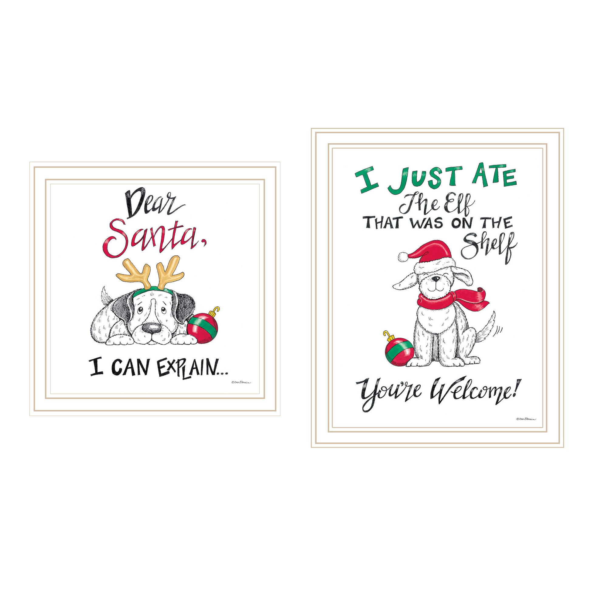 Trendy Decor 4U 2- Piece Vignette Dear Santa, I Can Explain White Framed Wall Art for Living Room, Bedroom Wall Art Print for Home Decor by Deb Strain