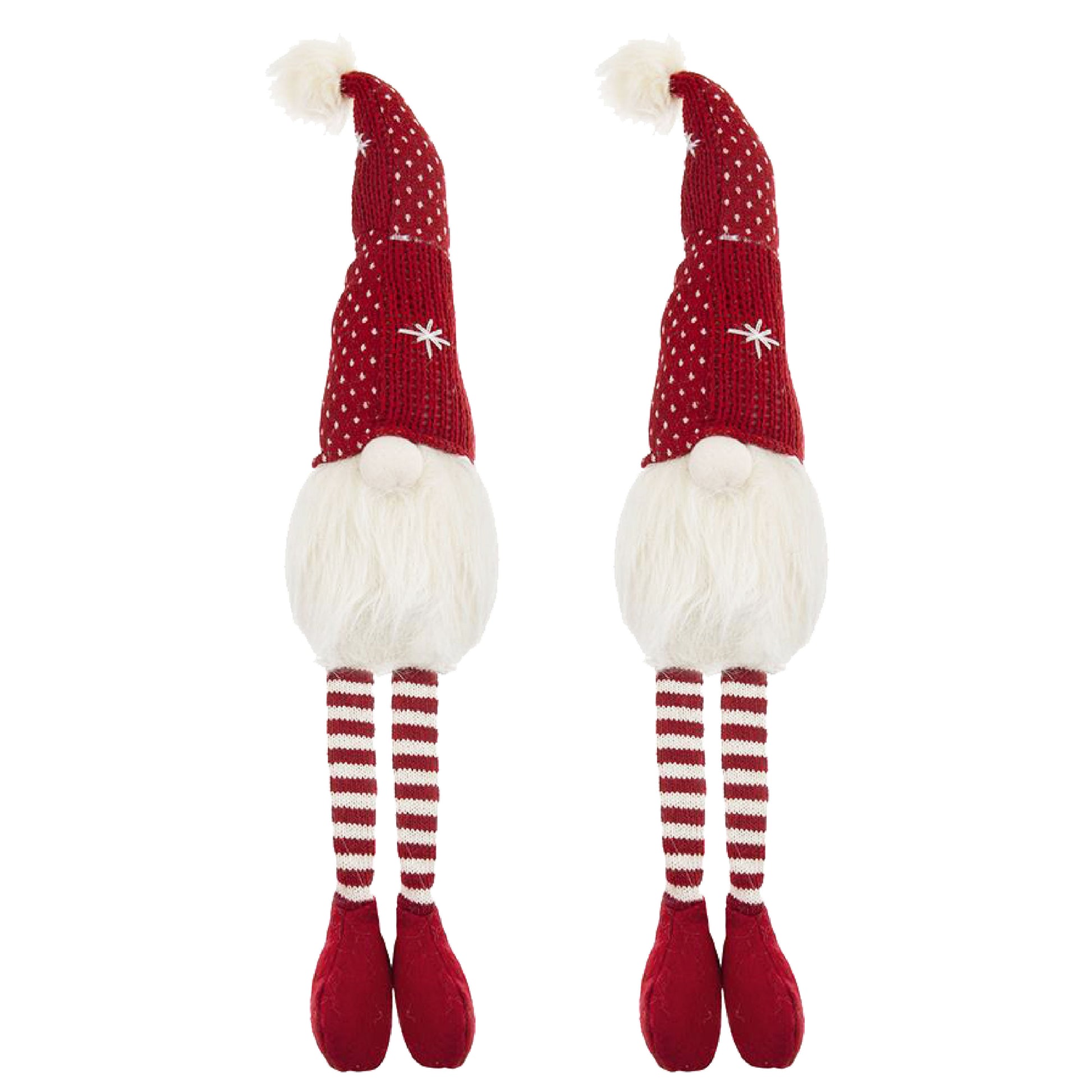 • Infusing the classic gnome design with a burst of festive minimalism, each figurine boasts a fluffy white beard, long, slender striped legs, and a jolly red and white hat.