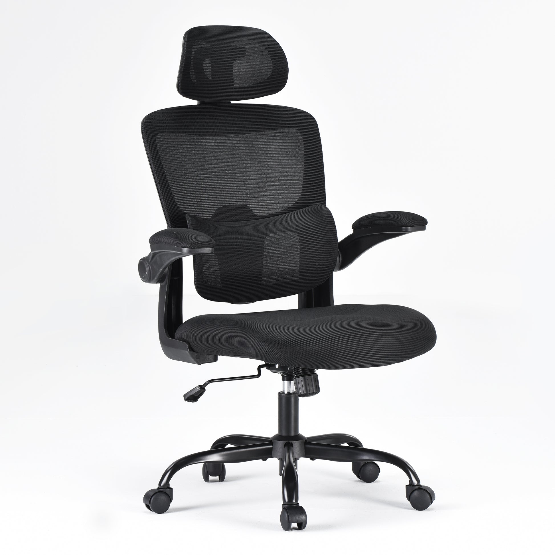 Ergonomic Office Chair, High Back Desk Chair with Flip-Up Armrest and Adjustable Lumbar Support, Computer Chair for Home and Office