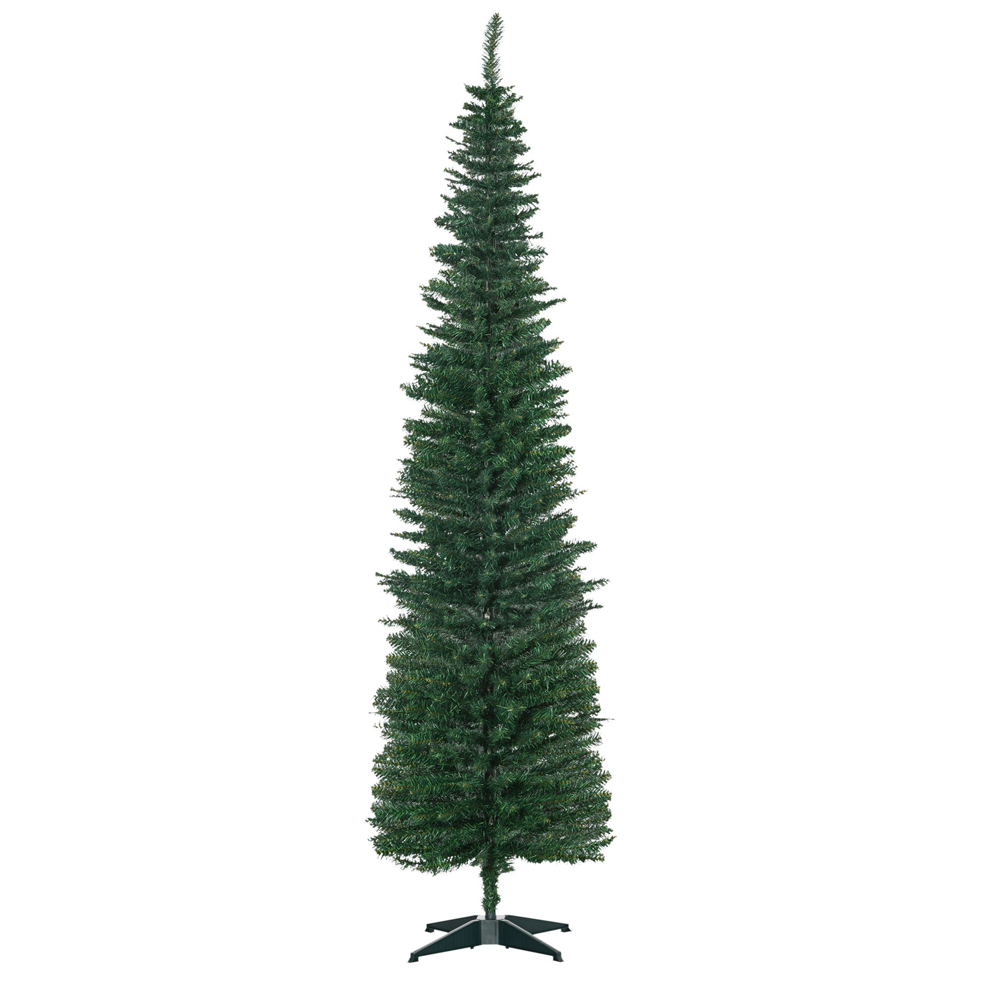 HOMCOM 7' Artificial Pencil Christmas Tree, Slim Xmas Tree with 499 Realistic Branch Tips and Plastic Stand, Green
