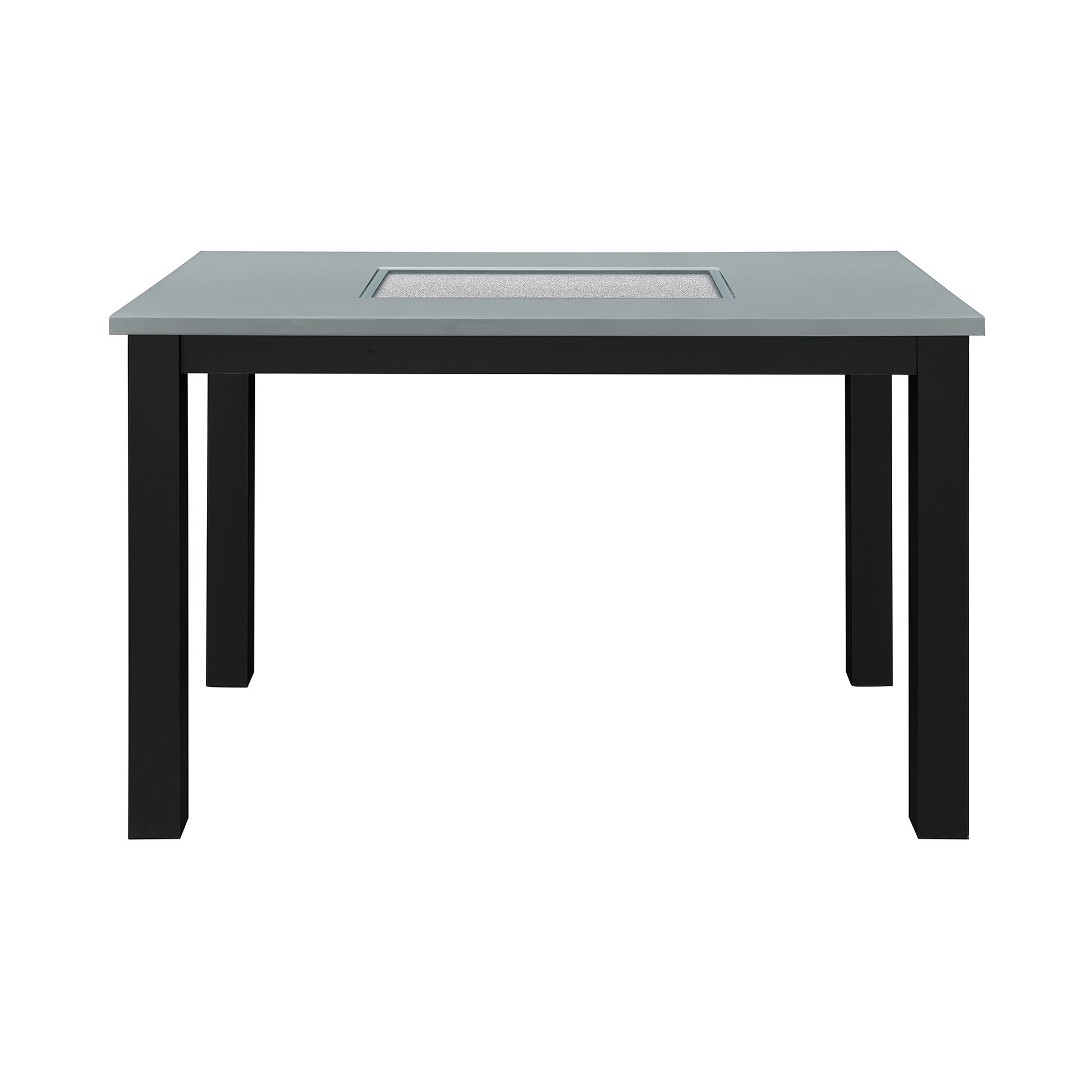 Grey and Black Dining Table Set with 4 Chairs, High Gloss Finish, Sturdy Rubber Wood Frame, Polyester Blend Seats, 5PC Set