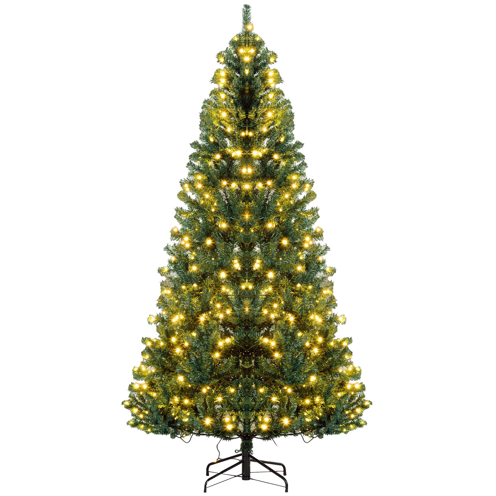 HOMCOM 7.5' Tall Prelit Christmas Tree Douglas Fir Artificial Christmas Tree with Realistic Branches, 500 Warm White LED Lights and 1346 Tips, Green