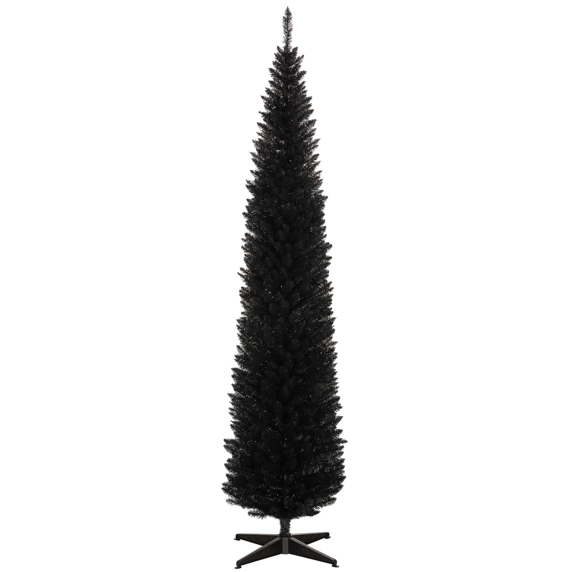 HOMCOM 8' Artificial Pencil Christmas Tree, Slim Xmas Tree with 618 Realistic Branch Tips and Plastic Stand, Black