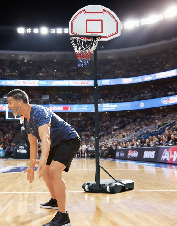 • Ball Holder: Store a basketball on the ball holder featured in the base, allowing a quick and easy way to get ready, making it as fast as possible to start playing.