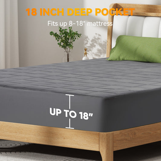 Quilted Fitted Mattress Pad King Size – 650gsm 3D+7D Fiber Fill, Brushed Microfiber Top & Bottom, 5' Deep Pocket with Elastic Skirt, 30x30cm Box Stitch, Soft & Cozy for All Seasons