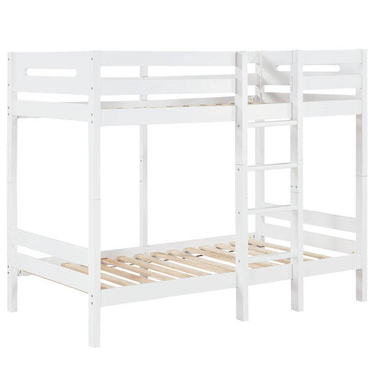 White Twin Over Twin Bunk Bed with Built-in Ladder