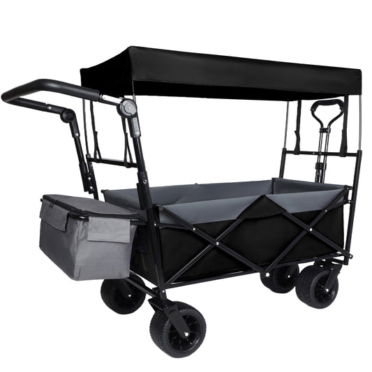 With Push Handle, 480Lbs Collapsible Wagon with Canopy, Wagon cart with 7' All-Terrain Wheels, Lightweight Foldable Wagon, Large Capacity for Camping, Shopping, Sports, and Garden Use, black