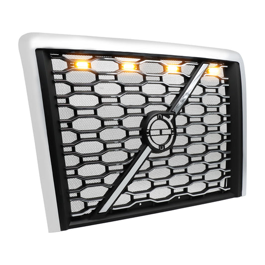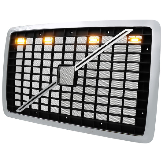 With Bug Screen And Light Strip Front Grille Compatible With 2004-2017 Volvo VNL Semi Trucks Chrome