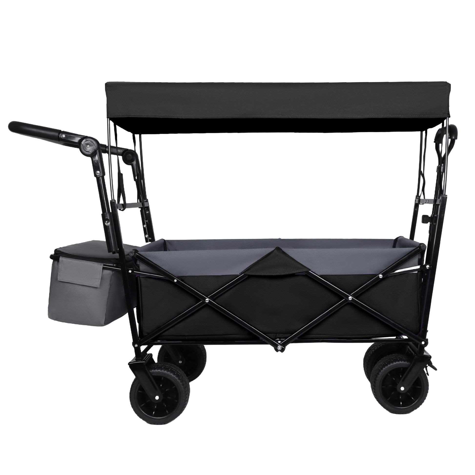 • Push or Pull Versatility, Move Effortlessly Anywhere! Adjustable Handle, Compact Fold Size, Load Up to 480lbs, Super Large 7'x4' Wheels,drink holders, removable canopy.