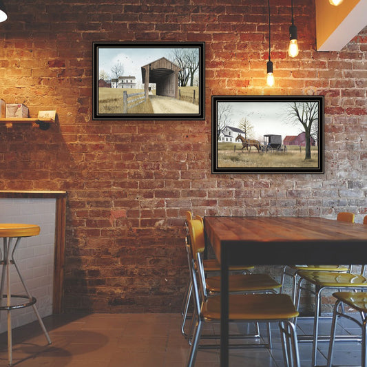 Trendy Decor 4U 2- Piece Vignette Miller's Creek Bridge, Going to Market Black Framed Wall Art for Living Room, Bedroom Wall Art Print for Home Decor by Billy Jacobs