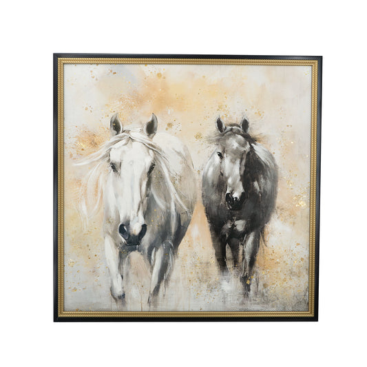 39.4x39.4' Realistic Hand-Painted White and Black Horse Canvas Art with Beige Backdrop