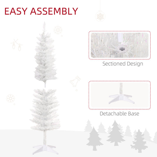 HOMCOM 5ft Tall Pencil Prelit Artificial Christmas Tree Holiday Décor with 250 Colorful Surface Branches, 150 Colorful LED Lights, White
