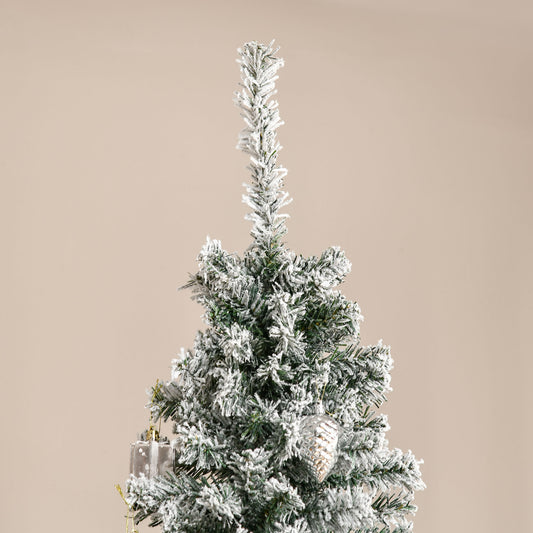 HOMCOM 7.5' Tall Unlit Snow-Flocked Slim Artificial Christmas Tree with Realistic Branches and 738 Tips