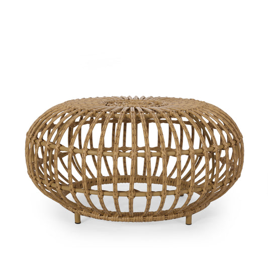 Outdoor Rattan Loveseat with Wooden Legs, Brown