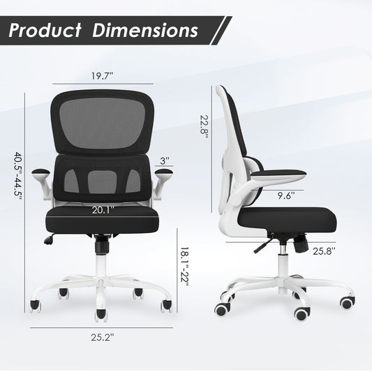 Soohow Office Chair, Mesh Ergonomic Office Chair with Lumbar Support, Comfy Computer Desk Chair with Flip Armrest Rolling Wheels for Home Study Room Office, White & Black