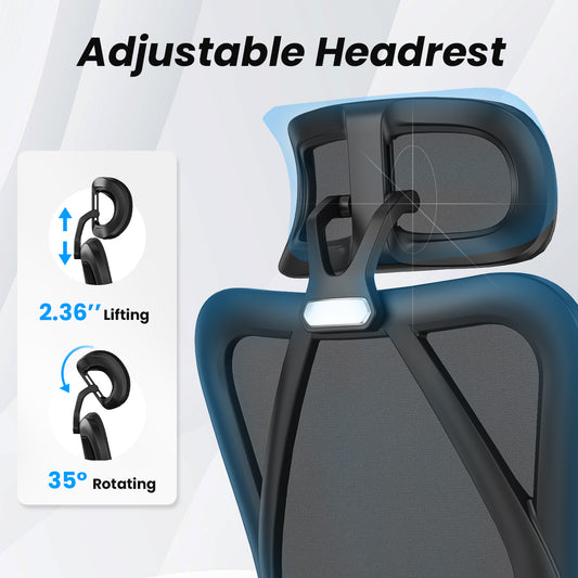 Ergonomic Office Chair,Mesh Desk Chair with Adjustable Lumbar Support and Headrest,Comfy Computer Chair with 3D Armrest Recling Swivel Chair for Home, Office, Study Room, Black & Navy