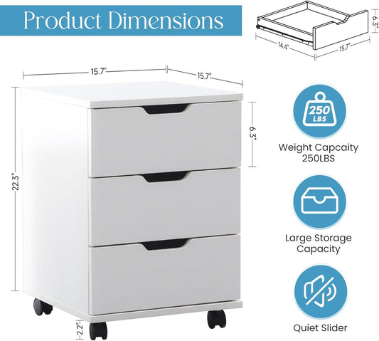Farini 3-Drawer Vertical Filing Cabinet Rolling Wood Mobile File Cabinets Under Desk for Home Office with Casters (White, Fully Assembled)