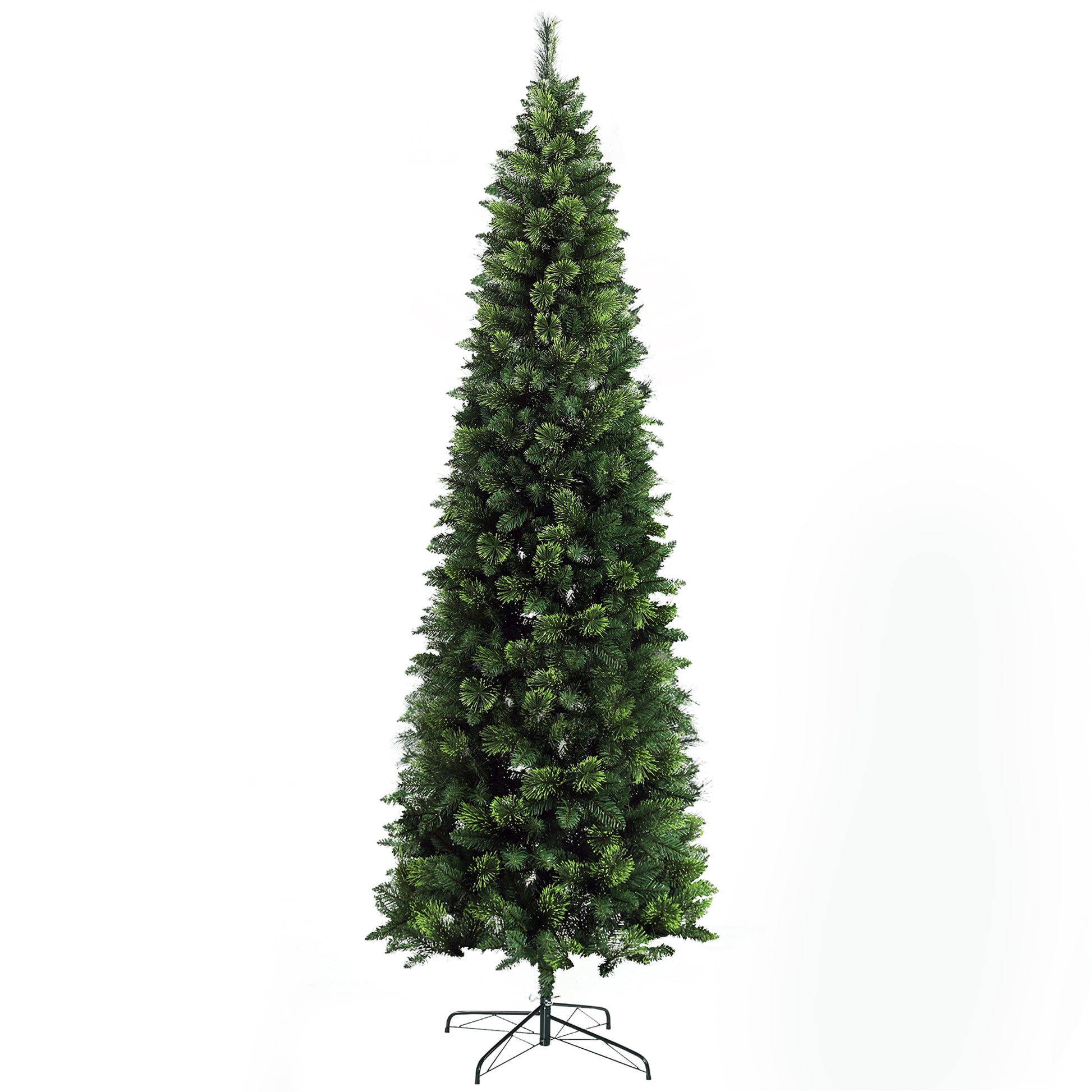 HOMCOM 9ft Tall Pencil Artificial Christmas Tree Holiday Décor with 1298 Branches, Auto Open, Steel Base, Pine Needles, Green