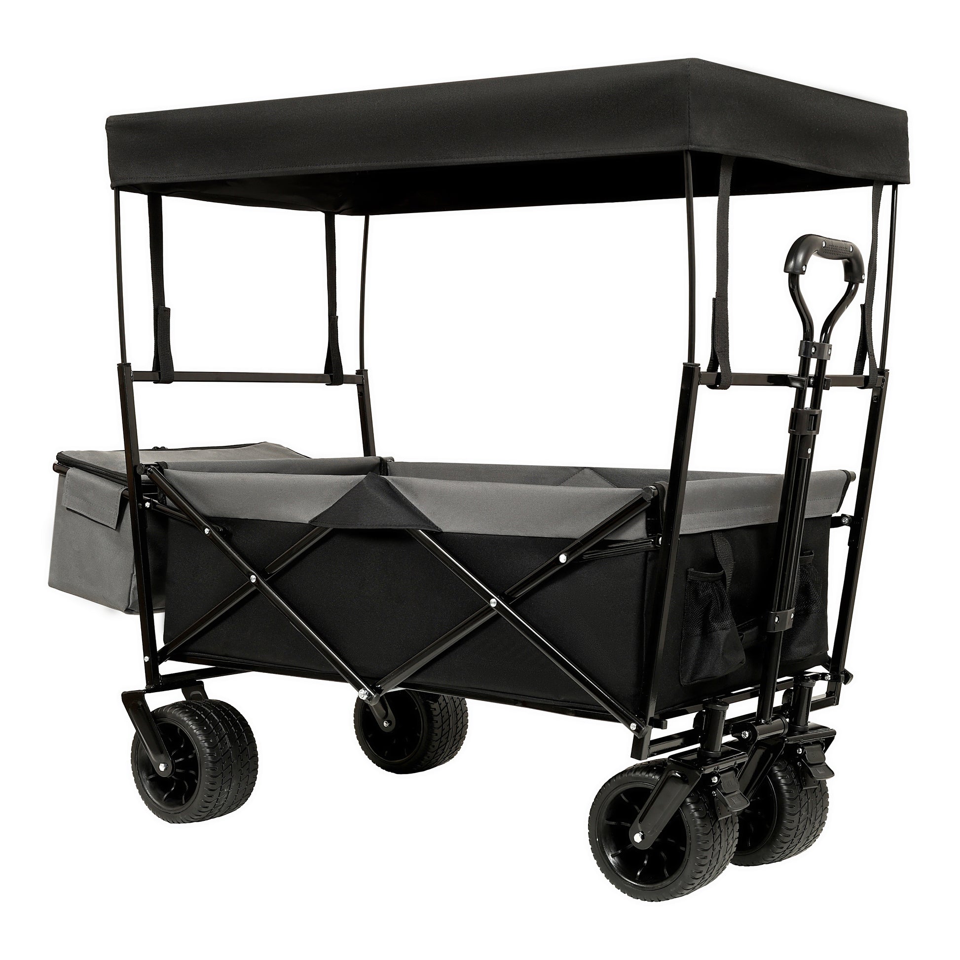 • Large Capacity – Adjustable Handle, Compact Fold Size, Load Up to 480lbs, Super Large 7'x4' Wheels,drink holders, removable canopy ,black with mosquito net