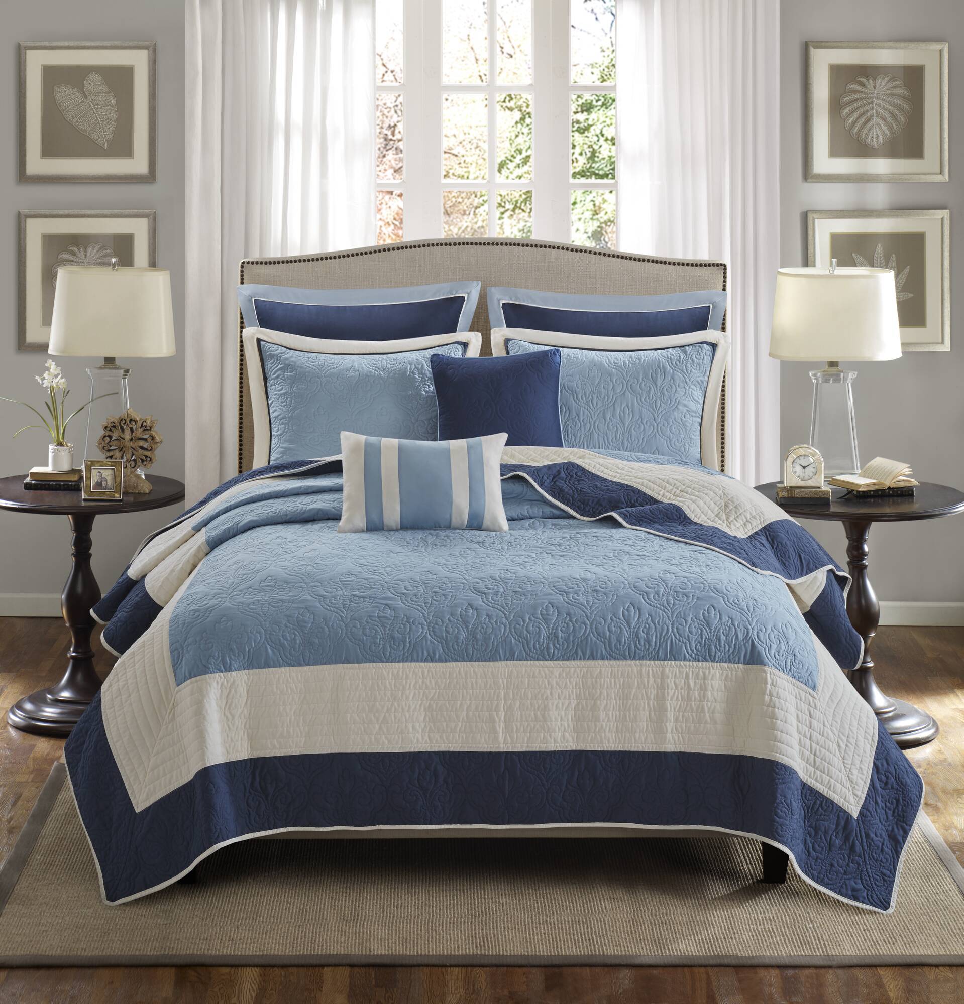7-Piece King/Cal King 7 Piece Quilt Set with Euro Shams and Throw Pillows,Navy