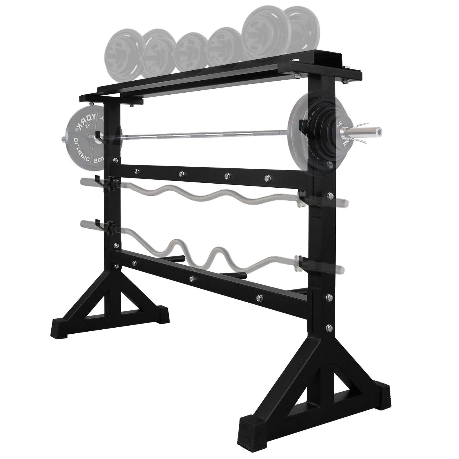 • 【UNIQUE DESIGN】 Store your fitness accessories on this versatile rack with its unique three-tier shelves and multiple storage pillars to keep dumbbell sets, deadlift sets and other weightlifting tools in one place