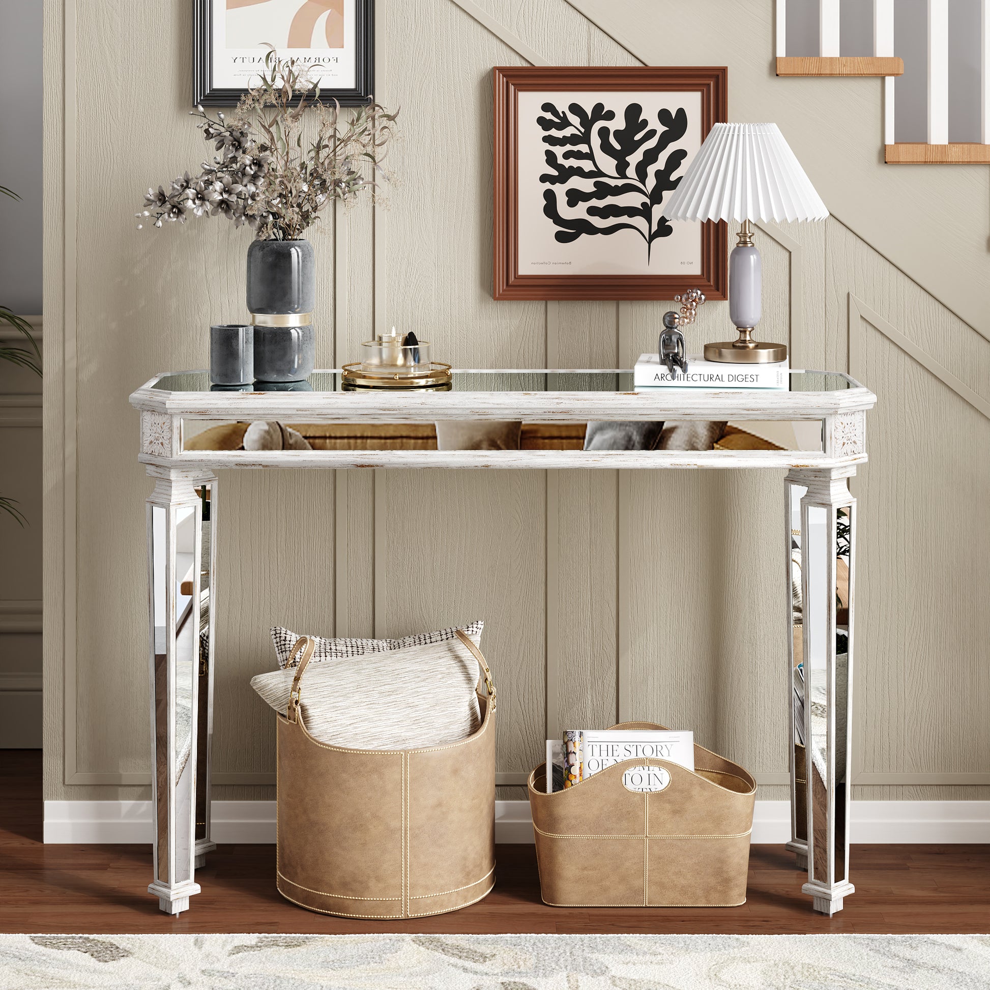 Mirror Console Table Vintage Wood Grain Carving Process Gorgeous and Noble for Entryway, Sofa Table,Living Room(48''W x 32.3''H x 18''D)