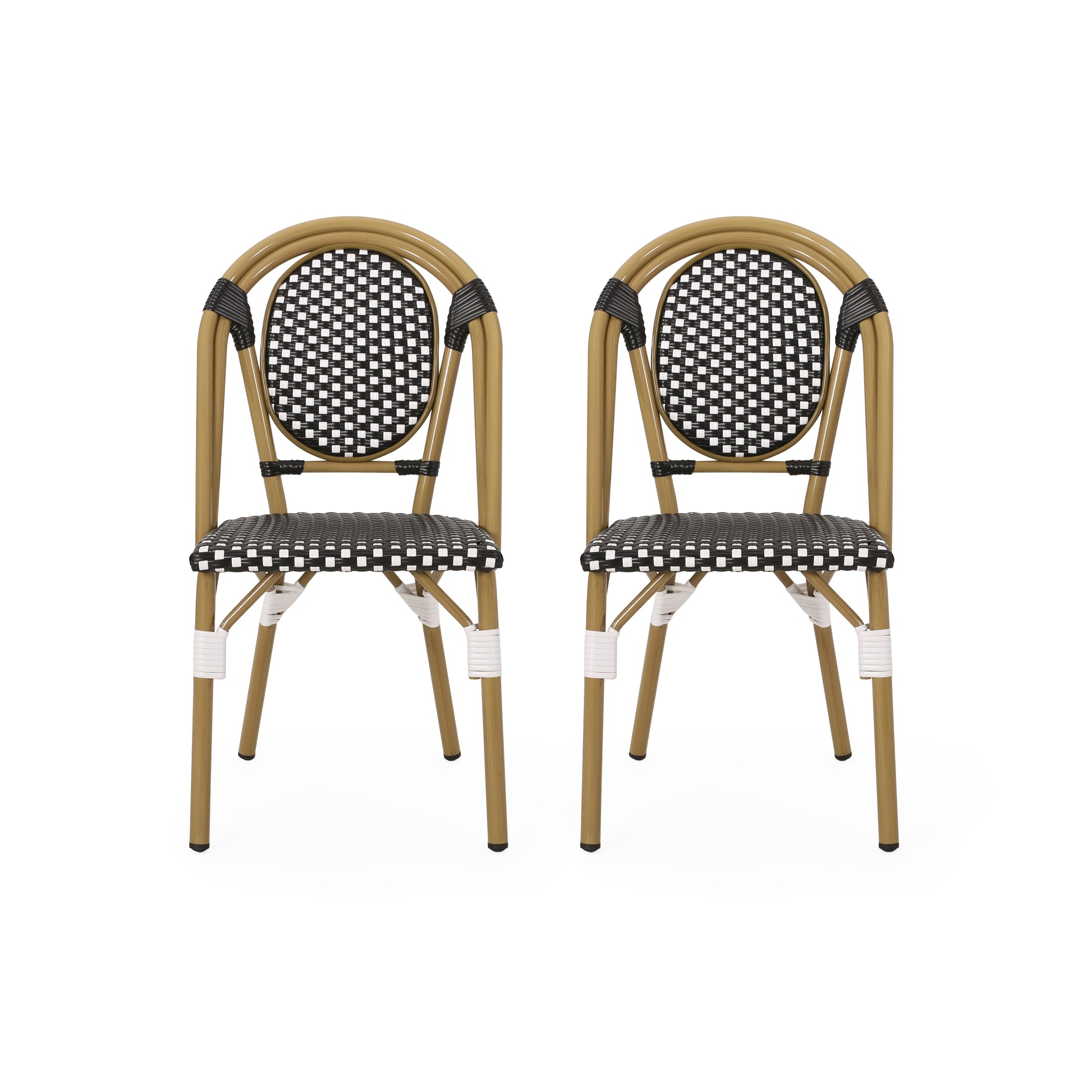 Outdoor PE Rattan and Aluminum French Bistro Chair Set, Black & White, Bamboo Print Finish