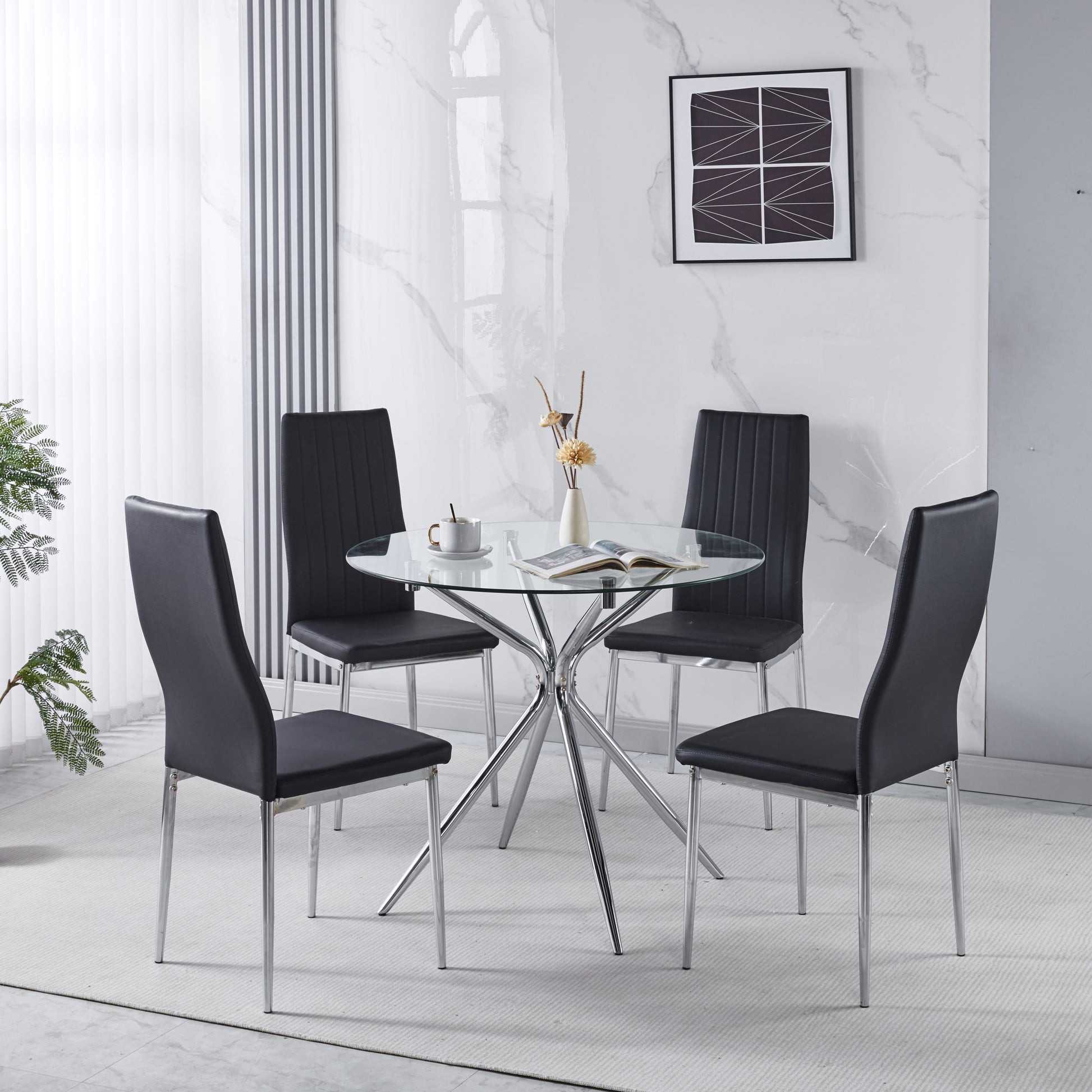1+4,5pieces dining set, Table metal leg Mid-century Dining Table for 4-6 people With Glass Table Top, Pedestal Dining Table, End Table Leisure Coffee Table.