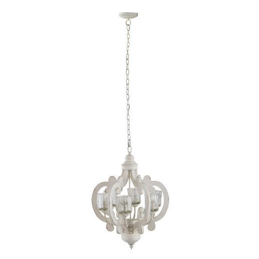 6 - Light Wood Chandelier, Hanging Light Fixture with Adjustable Chain for Kitchen Dining Room Foyer Entryway, Bulb Not Included