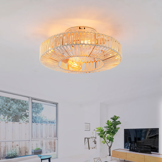 20' Rope Caged Ceiling Fans with Remote, Flush Mount Ceiling Fan with Light, Low Profile Chandelier 6 Speed DC Motor Reversible Ceiling Fan For Living Room Bedroom.--NOT INCLUDED BULBS-Matte White