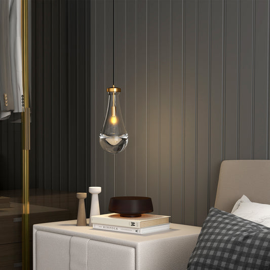 Modern Raindrop Pendant Lights, Pendant Lights for Kitchen Island, Brass Rod Dining Room Light Fixture, Clear Solid Raindrop Chandelier, Chandelier for Living Room Hallway,Not including Bulb